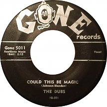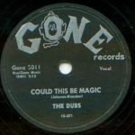 The Dubs was just one of the many harmonizing doo-wop groups that sang on the streets of Harlem in the 1950’s.But what made the Dubs stand out was one giant hit record that over the years has become a standard. With Richard Blandon as writer and lead singer, the Dubs gave us “Could This Be Magic.” A copy released on a black Gone record label is worth up to $75.00 as a 45 and up to $150.00 as a 78. Both are shown here.