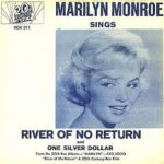 Directed by Otto Preminger, “River Of No Return” was a 1954 movie starring Robert Mitchum and Marilyn Monroe. Problems like frequent rain, Monroe’s ankle injury, and Mitchum’s heavy drinking added weeks to the shooting schedule. Monroe has been quoted as saying it was her worse movie. A 1962 release of the 45 on 20TH Century Fox can sell up to $100.00. The 78 of “River Of No Return” with “I’m Gonna File My Claim” on the flip side was released to radio in 1954 by RCA. With Marilyn Monroe’s picture on the label, it’s worth up to $300.00 today.