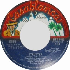“Strutter” is a song written by Gene Simmons and Paul Stanley. Released as a single by Kiss in 1974 with “100,000 Years” on the flip side, it failed to make the charts. Peter Criss, the original drummer for Kiss, said “Strutter” is his favorite Kiss song. Issued on Casablanca Records, the 45 is worth up to $400.00 today.