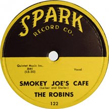 Jerry Leiber and Mike Stoller were among the most sought after songwriters of the 50’s and 60’s. They wrote enough hits to fill a Broadway show. The title of that show is the same as one of their earliest hits, “Smokey Joe’s Café.” The single was recorded by the Robins whose members Carl Gardner and Bobby Nunn became part of one of Rock and Roll’s most popular groups, the Coasters. The 45 of “Smokey Joe”s Cafe” can sell for $150.00 today. The 78 for $250.00.